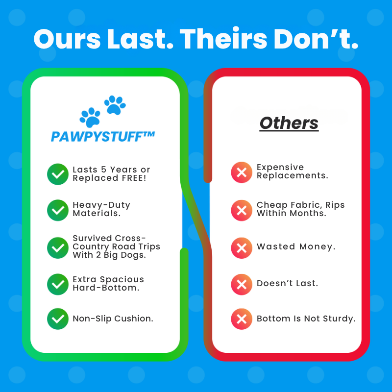 Other seat covers rip within months and are cheaply made. PawpyStuff Seat Protector Lasts 5 Years Guaranteed — or we replace it FREE! Stop wasting money on cheap made fabric that doesn't last.
