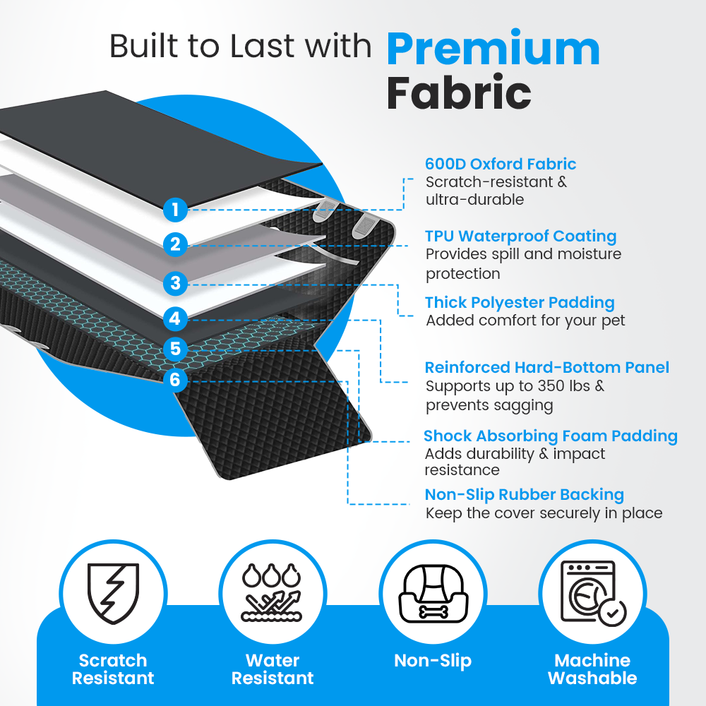 Reinforced with 600D Oxford Cloth and waterproof TPU backing, it’s strong enough to handle 2 Great Danes — without ripping, sagging, or sliding. Say goodbye to torn seats, scratched doors, and expensive repairs.