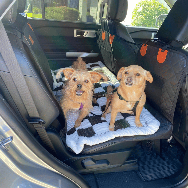 Knowing your pup is safe, comfortable, and relaxed on the road makes road trips stress-free. The comfy hard-bottom protector gives your pups a safe ride while your car stays protected.